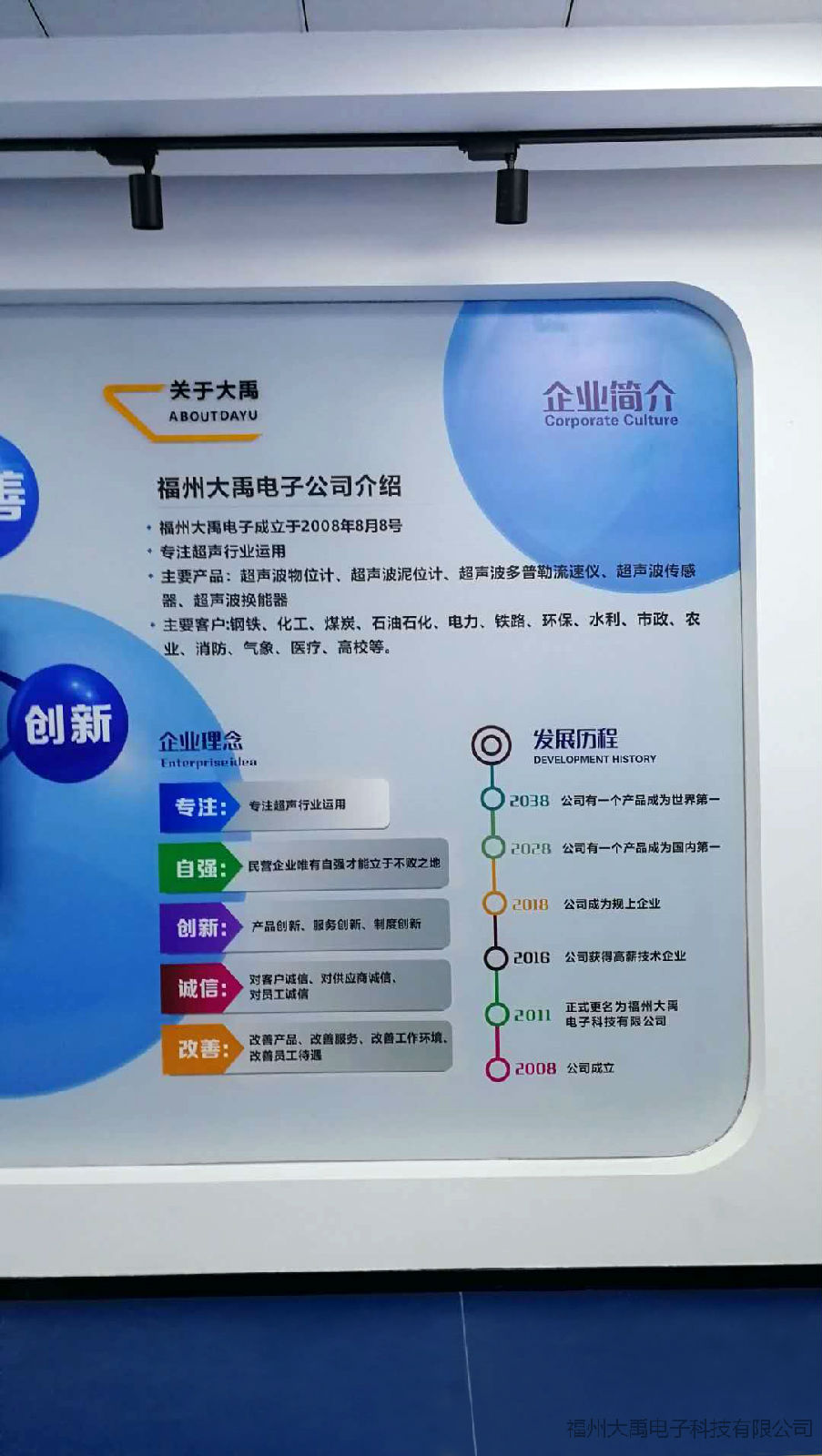 2018是個好年頭,習(xí)大大常說:讓美好愿景變?yōu)楝F(xiàn)實(shí)。現(xiàn)在,大禹電子實(shí)現(xiàn)了許久以來我們這些超聲波大禹人的美好理想及追求。自2016年大禹電子被評為福建省高新技術(shù)企業(yè)以來,通過我們堅(jiān)持不懈的努力,公司又開發(fā)了近幾十款新型的換能器及高品質(zhì)的超聲波液位計(jì)新款,以及超聲波多普勒流量計(jì)小型流量計(jì)。近來,新的展廳也順利完成!分別展出本公司生產(chǎn)的眾多超聲波產(chǎn)品系列。